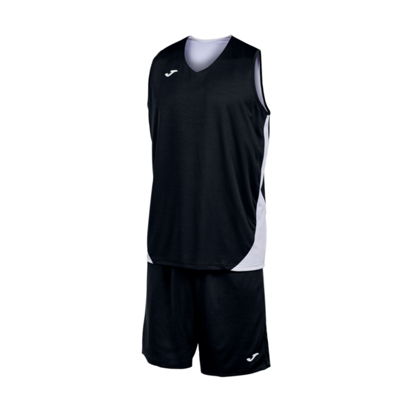 Ensemble en tissu léger composé d'un maillot et d'un short réversibles.